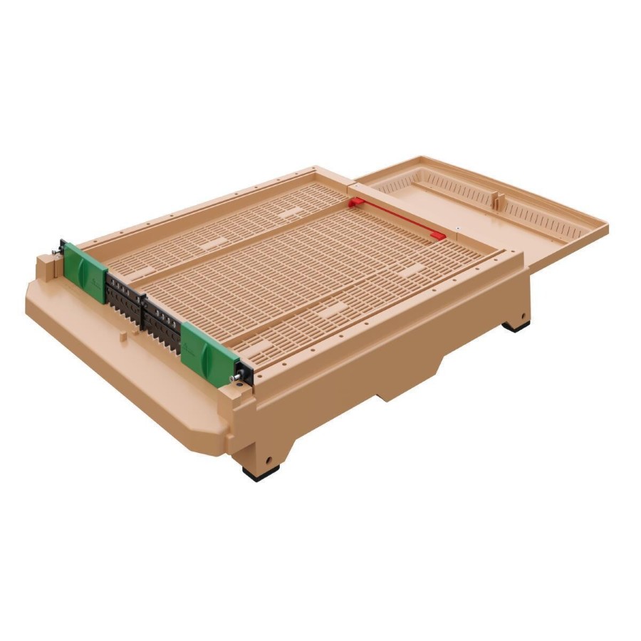 Anti-Varroa Izgarası: Tabanın tamamını kapsayan ızgaralı yapı, varroa parazitlerinin kovan dışına düşmesini sağlayarak koloninizi doğal yollarla korur.