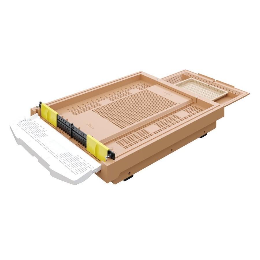 Entegre Anti-Varroa Sistemi: Taban ızgarası, arıların üzerindeki parazitlerin doğrudan alt tepsiye düşmesini sağlar. Kimyasal kullanmadan varroa popülasyonunu kontrol altında tutmanıza yardımcı olur.
