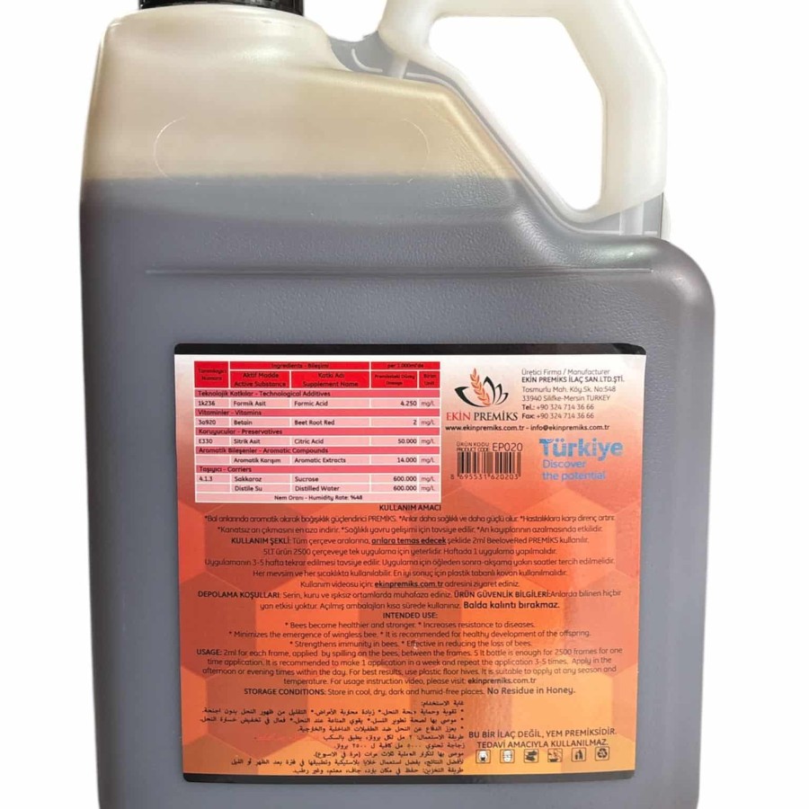 BeeLove Red 5 Litre; geniş arılıklar için aromatik bağışıklık desteği sağlar. Kanatsız arı oluşumunu engeller ve parazit savunmasını güçlendirir.