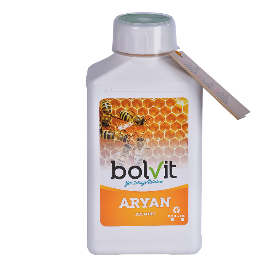 Besleme Karışımı: Hazırladığınız 1 litrelik arı şurubuna veya 1 kilogramlık arı kekine, ihtiyaca göre 10 cc ile 25 cc arasında Bolvit Aryan ilave etmeniz yeterlidir.