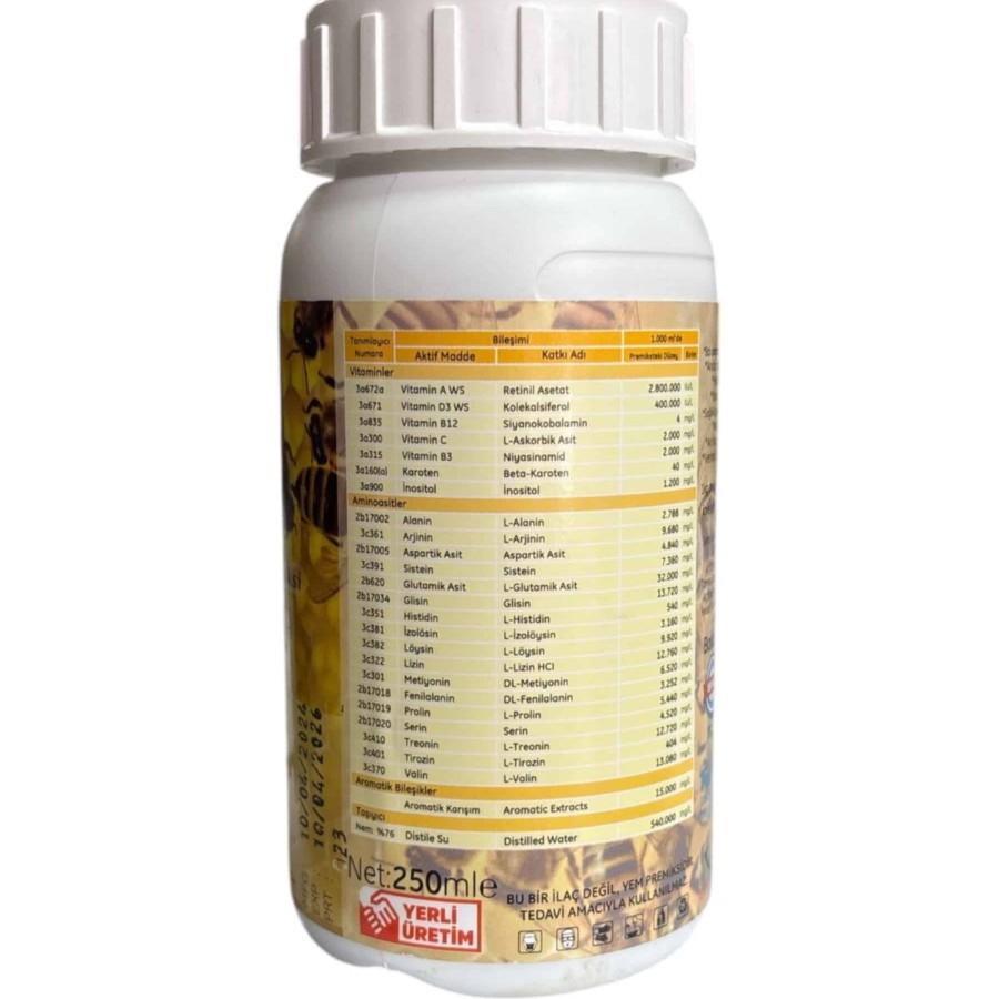 Gelişmiş Vitamin ve Aminoasit Kompleksi: Arıların biyolojik sistemlerini destekleyen zengin içeriği sayesinde, koloninin doğal gelişim sürecini hızlandırır ve genel kondisyonunu yükseltir.