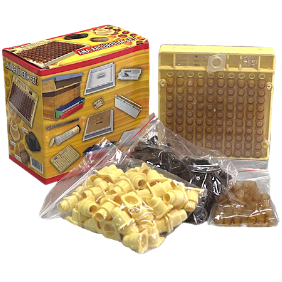 ✓ Set İçeriği: 1 adet ana yumurtlatma kaseti, 100 adet hücre kapçuğu, 100 adet hücre tutucu, 100 adet çıta montaj aparatı ve 40 adet koruma kafesi (bigudi).