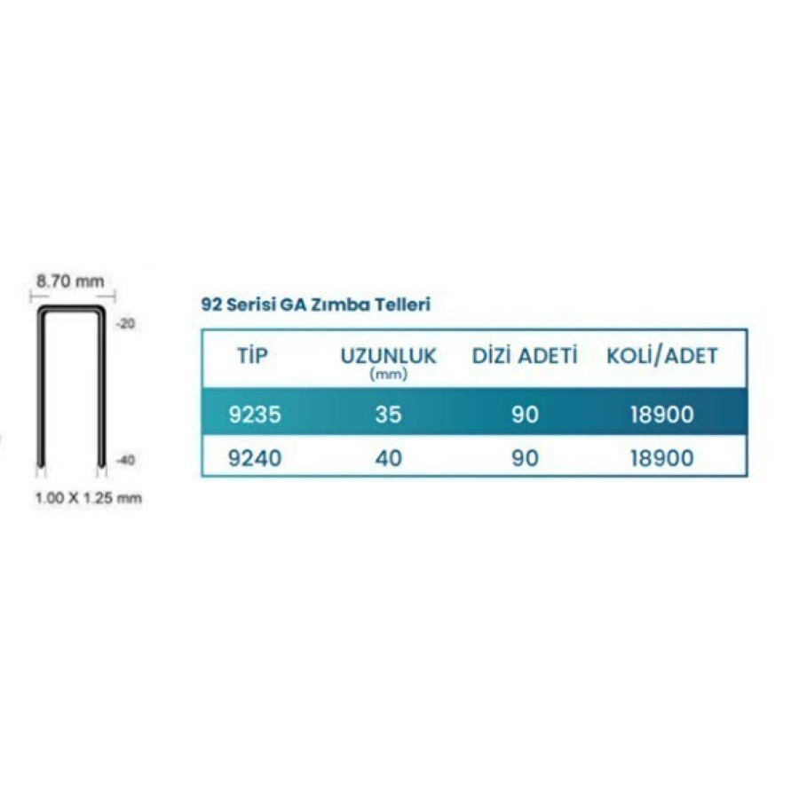 Mevcut Ölçü Seçeneklerimiz: İhtiyacınıza ve zımba tabancanıza göre aşağıdaki ölçülerden size uygun olanı seçebilirsiniz: